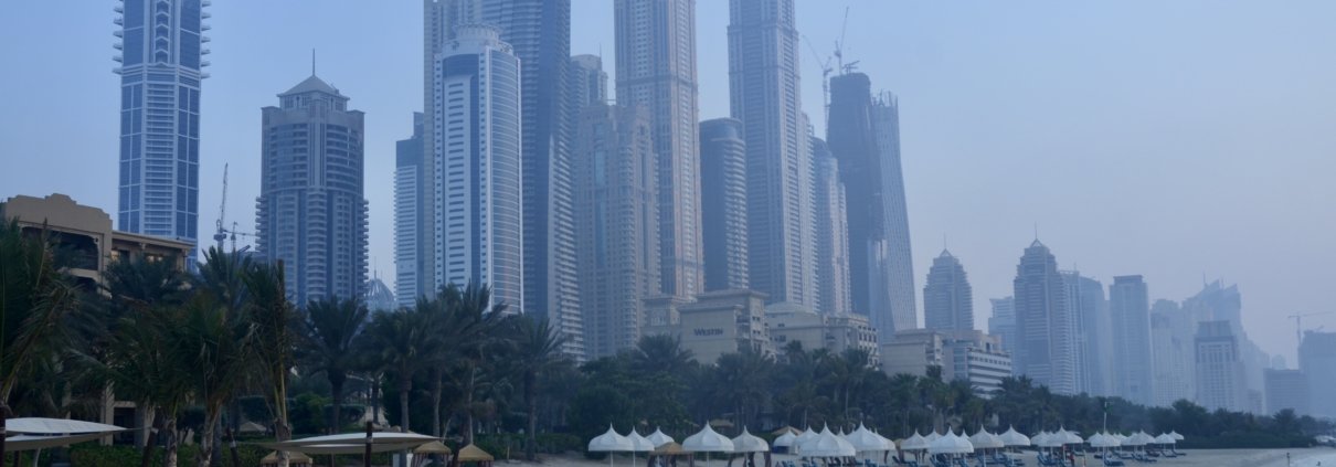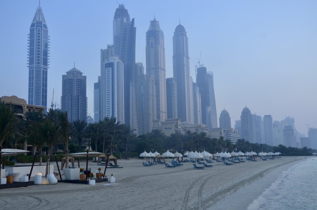 Beach of The Palace & Dubai Marina in the background