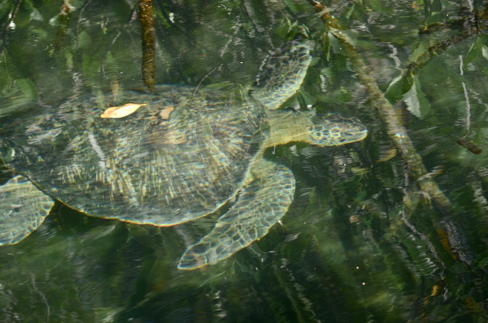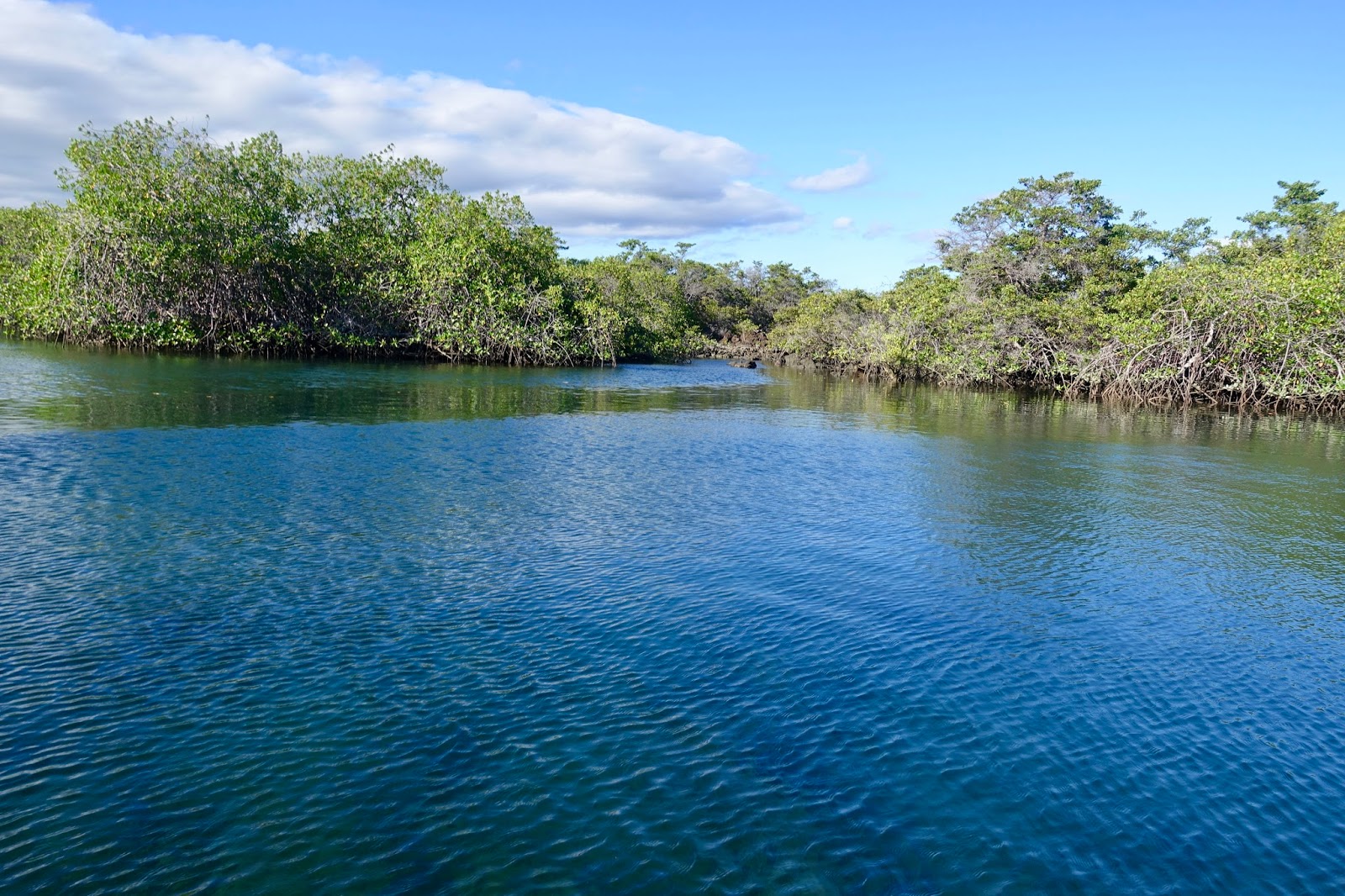 Heading to Bahia Elisabeth in the afternoon by zodiac, we saw the tallest red mangrove trees in the Galapagos and observed green sea turtles, pelicans, herons and sea lions.
