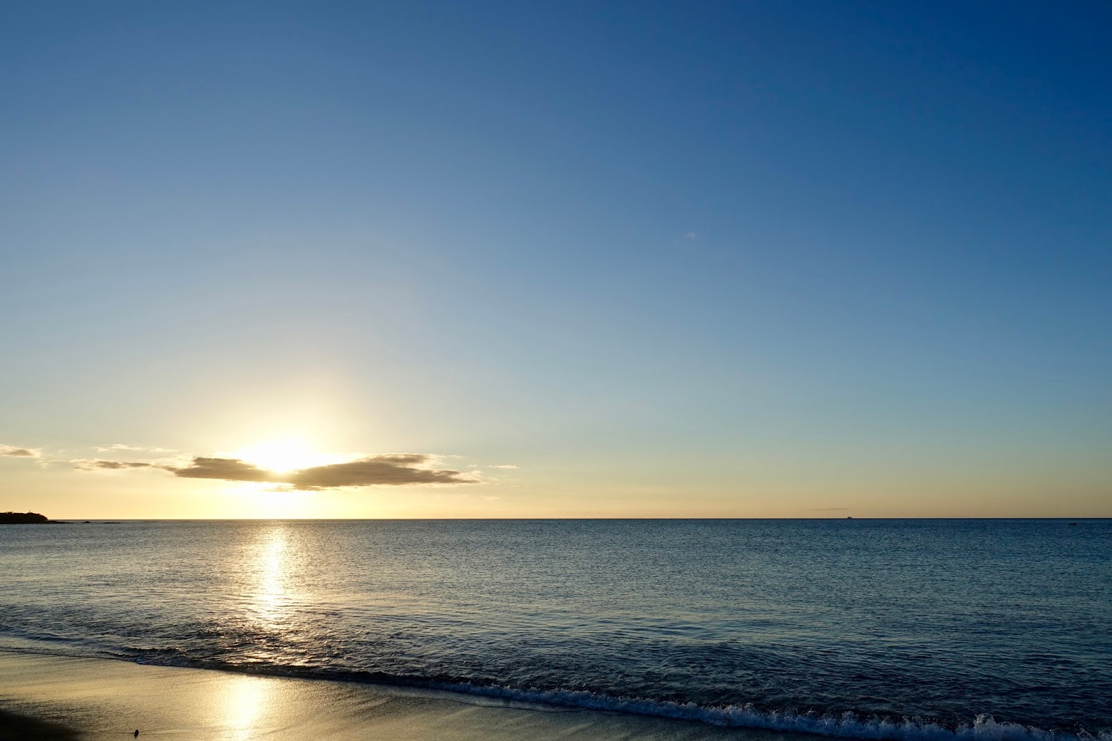 At Punta Cormorant, a walk brought us to a water lagoon where we found many flamingos. Some of them took off letting us see a beautiful black and pink pattern on their wings. The sun was setting at the time we started back to our ship.
